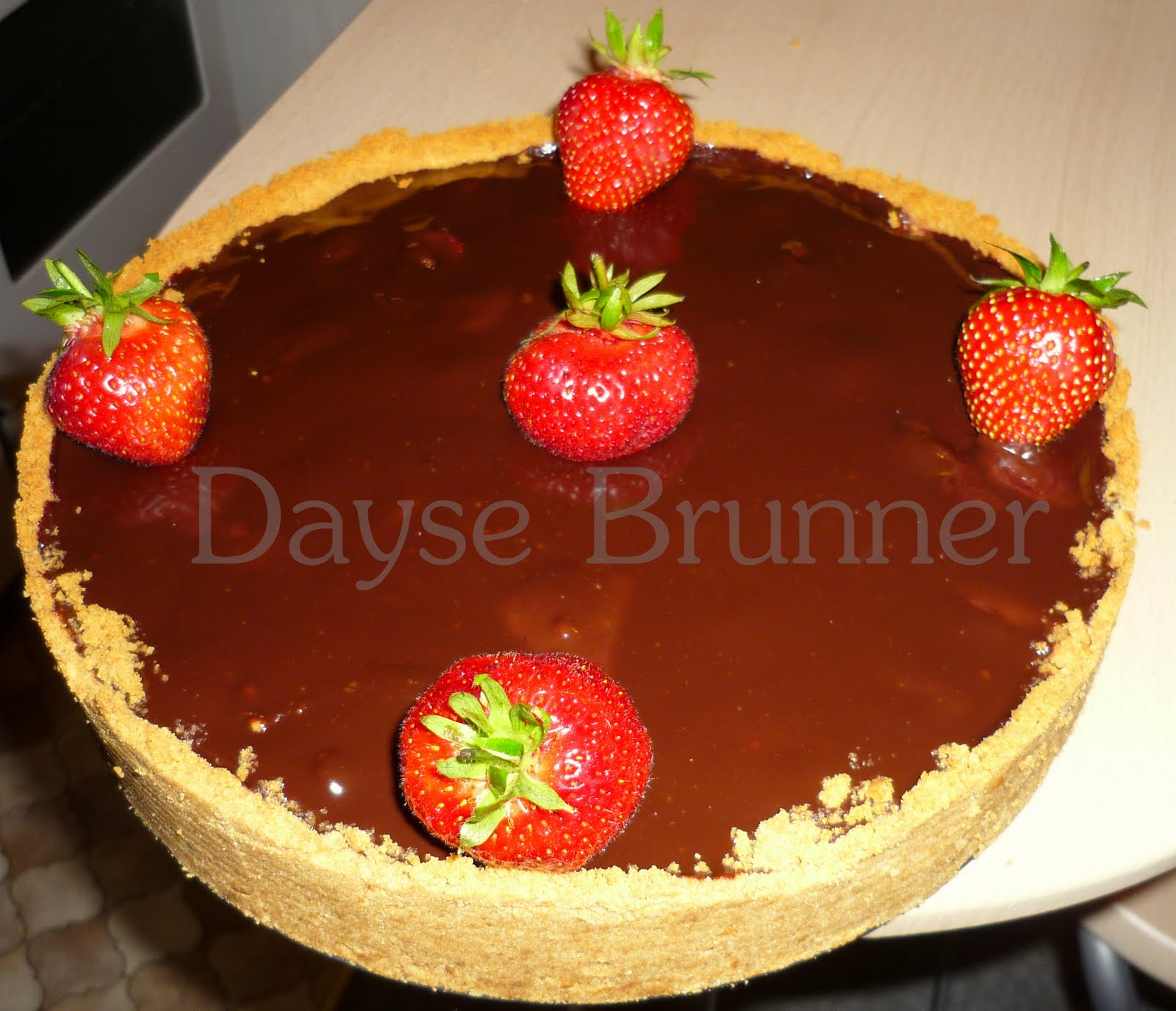 Você vai cobrir a torta com esta mistura até tampar todos os morangos.