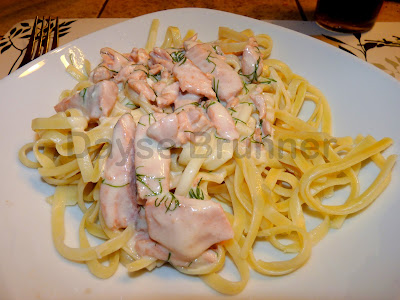- Refogue a cebola picada no azeite ou na manteiga (como voce preferir), 5 minutos depois acrescente o salmao. Refogue durante mais 10 minutos.